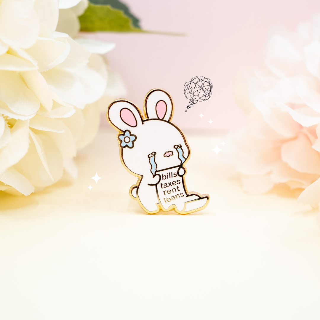 Bills Rent Taxes Stressed Bunny Pin